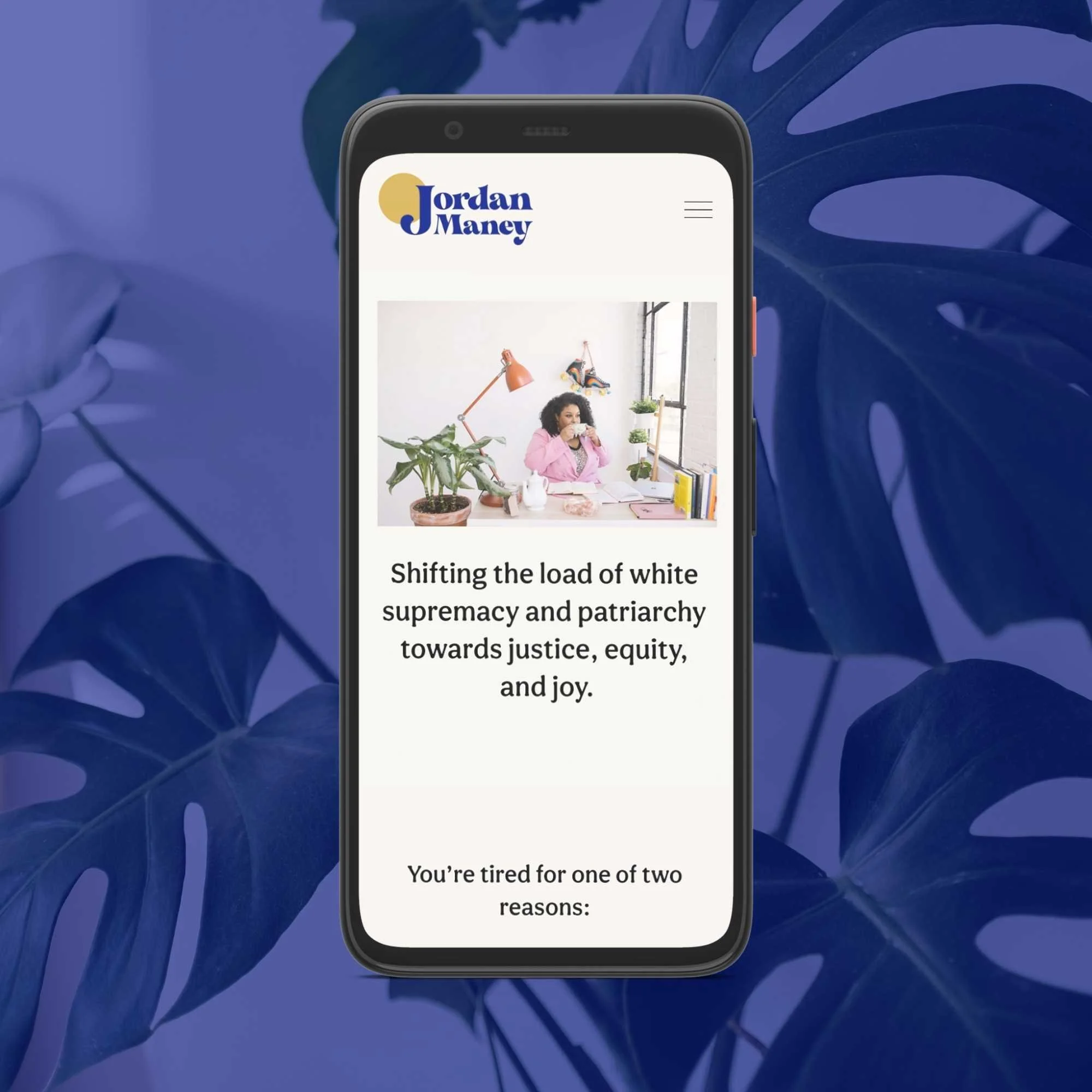 Challenging the patriarchy and white supremacy is hard, so Jordan focuses on joy above all else, and it was so important that her website reflect this.